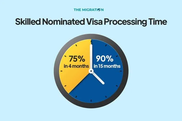 - 4 months to process 75% of applications for Skilled Nominated Visa.